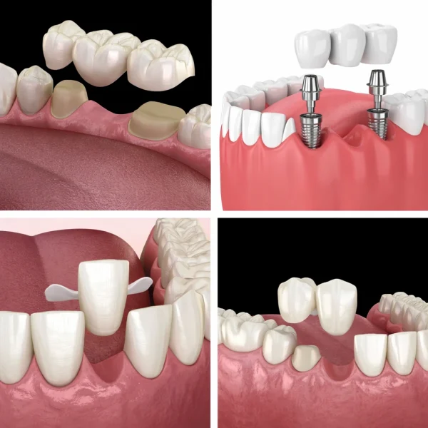 A dental bridge is a popular and effective method for replacing missing teeth. In this procedure, an artificial tooth (pontic) is held in place by the healthy teeth on either side of the gap, acting like a “bridge” over the space.